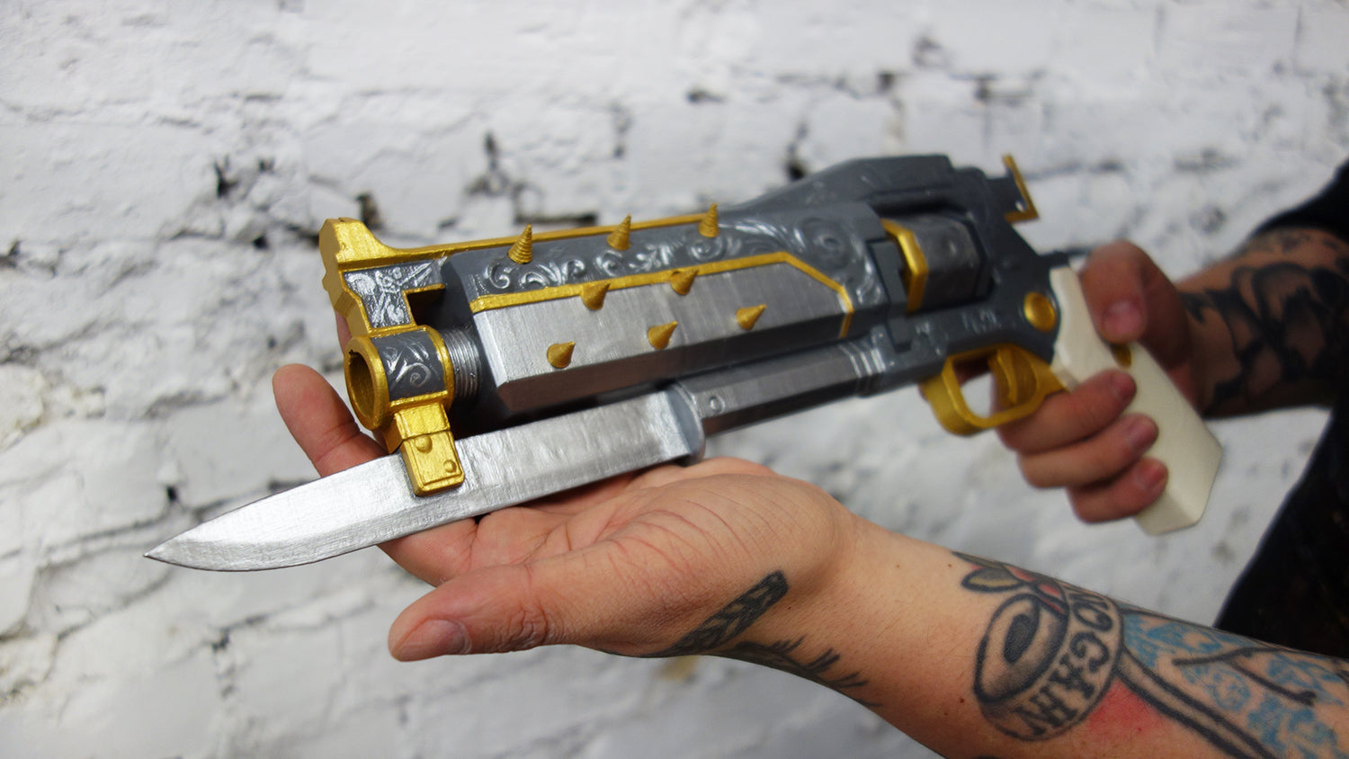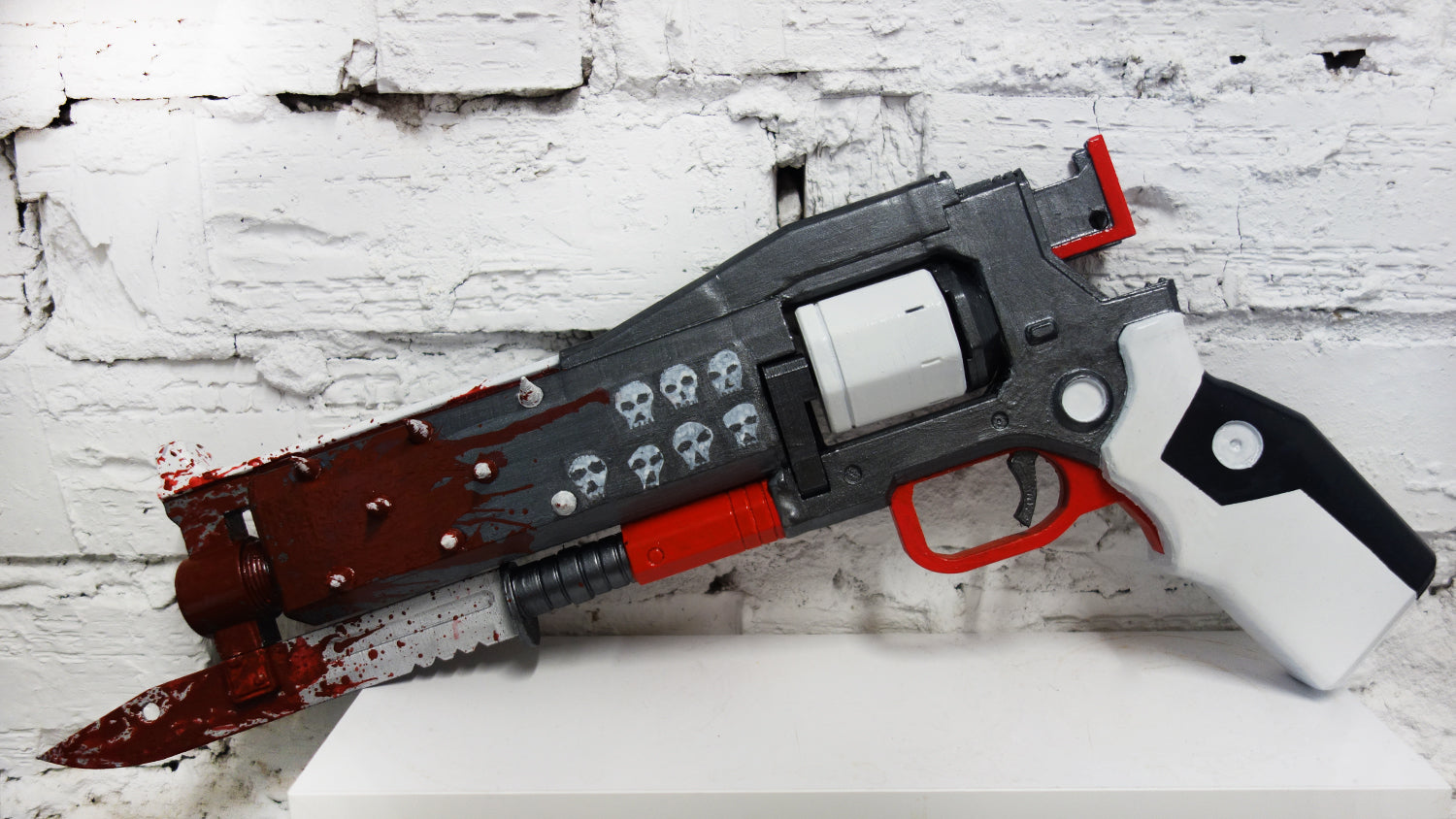 This gun is 3D printed of PLA plastic (human-friendly material) and a metal Frame, assembled and sanded, hand painted with acrylic paint and varnished with a satin/glossy finish, so the paint could remain as long as possible. These Are All Custom Made and Not Cheaply made.