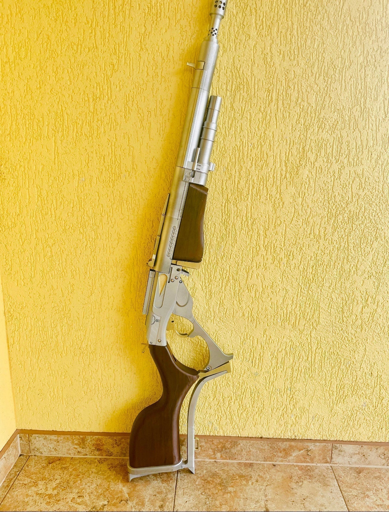 This gun is 3D printed of PLA plastic (human-friendly material) and a metal Frame, assembled and sanded, hand painted with acrylic paint and varnished with a satin/glossy finish, so the paint could remain as long as possible. These Are All Custom Made and Not Cheaply made.