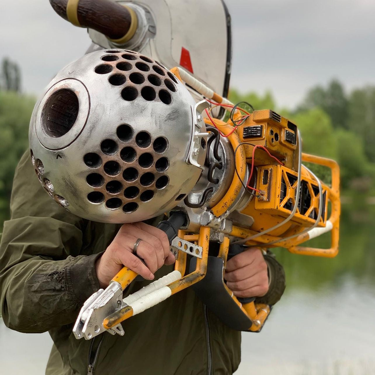 This gun is 3D printed of PLA plastic (human-friendly material) and a metal Frame, assembled and sanded, hand painted with acrylic paint and varnished with a satin/glossy finish, so the paint could remain as long as possible. These Are All Custom Made and Not Cheaply made.