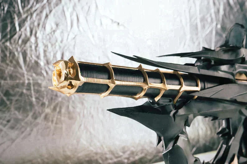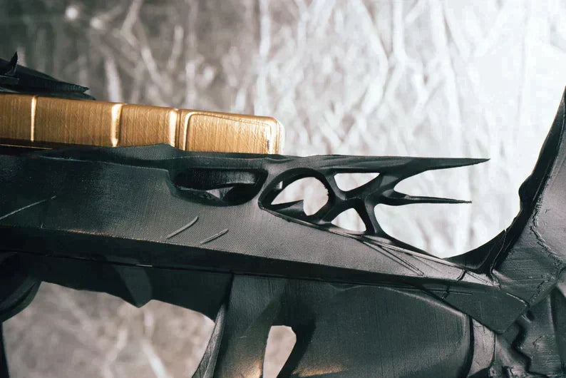 This Prop is 3D printed of PLA plastic (human-friendly material) and a metal Frame, assembled and sanded, hand painted with acrylic paint and varnished with a satin/glossy finish, so the paint could remain as long as possible. These Are All Custom Made and Not Cheaply made.